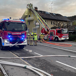 Am 06.11.2023 wurden wir um ca. 06:30 Uhr zur nachbarlichen Hilfeleistung nach Koblach alarmiert. Dort geriet bei einem Gebäude der Dachstuhl in Brand.